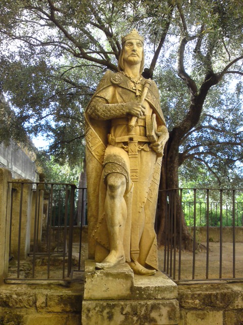 | II Alcazar : leçon de jardinage L'Alcazar de Cordoue, premier visité d'une longue lignée d'Alcazar (= palais en Arabe) ou d'Alcazaba (petite forteresse), reste certainement l'un des plus sophistiqué en terme de jardins, si l'on excepte bien évidemment l'Alhambra voire l'Alcazar de Seville (le comité touristique étant toujours en discussion à ce sujet). De fait, si la muraille extérieure et le comité d'accueil laissent augurer du meilleur, l'architecture du palais en elle-même a tendance à se fondre dans l'espace et vaut surtout pour la vue imprenable qu'elle peut offrir sur les environs. Côté jardin, l'eau est maîtresse des lieux, rendant l'endroit propice à quelques photos de carte postale. Le parc, très rigoureusement entretenu, habille parfaitement le bassin principal, et il n'y a guère que quelques réfractaires à délaisser l'harmonie d'ensemble pour des jeux d'eau autrement plus quelconques. A l'heure de quitter les lieux, après une visite finalement assez rapide, un seul regret : le manque d'un véritable intérieur architectural "qui pète" à Cordoue. |