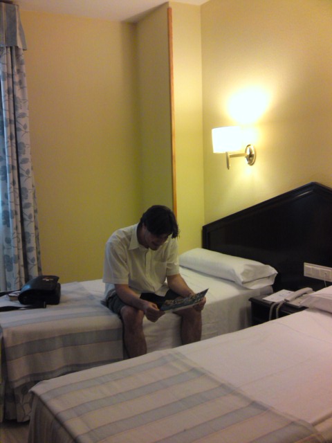 conquête de l'Alhambra On peut considérer qu'il y a une part de naiveté (voire de stupidité) à ne pas réserver pour s'assurer de la possibilité de visiter un monument historique mondial dit "majeur". Toutefois, les visites du Palacio real à Madrid ou de la Mezquita à Cordoue, organisées à la volée, avaient pu convaincre deux touristes innocents du caractère accessoire d'une réservation anticipée pour l'Alhambra. Une minute de silence avait été alors été observée face à la mention "completo" du site Internet de ventes de billets avant que le patron du cyber-café explique que la politique du site était de limiter le nombre de billets disponibles en ligne, mais qu'il était possible d'acheter des billets "sur place" le jour même, à condition de se lever tôt et d'être parmi les premiers à l'ouverture des guichets directs. Il avait alors été établi que le réveil sonnerait à 5H45 du matin, pour une arrivée sur place à 7H. L'idée de négocier ayant été d'office refermée, il s'agissait alors de faire contre mauvaise fortune bon coeur....et repas spectacle de flamenco pour finir de flinguer définitivement la nuit. |