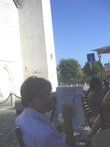rejoindre les trésors centraux. I Realejo et Albaicin Garés, et rétablis de fait dans notre statut de joyeux piéton (moyennant moultes piecettes), le quartier du Realejo se dévoilait. Principalement constitué de rues piétonnes, ce quartier privilégié et aux allures finalement assez récentes, semble constituer le centre ville de Grenade. Jouxtant les quartiers "historiques" de l'Albaicin et du Sacromonte, il constitue de plus une véritable réserve de petits restaurants. Nous n'avions ainsi pas manqué de nous insinuer dans une terrasse bondée pour découvrir les spécialités locales : bocadillo, jamon serrano y queso. Le destin avait été cruel. Cette première déconvenue culinaire avait été suivie de prêt par d'autres claques plus plastiques ou pratiques : nos yeux, blasés par la (bien déserte) cathédrale de Jaén ou les lumineux édifices madrilènes, n'avaient fait que peu de cas de la cathédrale locale, pourtant envahie de touristes, tandis qu'un véritable festival des porte fermées verrouillait toute deuxième chance donnée au quartier, y compris à l'heure du gouter. Par chance, nos errements dans la ville, ponctués de retrouvailles avec quelques amis locaux, nous avaient ouvert les portes de monuments autrement plus aguicheurs ou atypiques. Parmi eux, le couvent de San Jeronimo, avec ses fresques impeccables et son patio aguicheur, avait su se faire apprécier. Toutefois, une analyse approfondie du plan touristique de l'hotel aboutissait sur une conclusion implacable : sans l'Albaicin, point de salut à Grenade. A l'assaut de se secteur très vertical, et encouragés tant par la star locale que par la promesse délicatement disposée de pendre notre pied une fois en haut, nous avions découvert les caractéristiques particulières de ce quartier : un véritable amas de petites maisons blanches, à la propreté/solidité parfois douteuse, entourées d'étroites ruelles glissantes qu'il s'agissait d'arpenter en prenant moultes précautions pour rejoindre le sommet, jusqu'au quartier du Sacromonte. En haut, possibilité avait été donnée aux randonneurs d'admirer un premier échantillon du trésor local et d'évoquer les conditions de sa visite le lendemain, tout en prenant le temps d'un Granité (limon) particulièrement mérité. Il fallait bien préparer le pigeon touristique à la farce à venir.... |