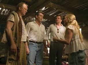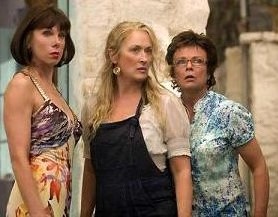 "l'un de ses pères", réticent au mariage : - Non mais Sophie, j'ai été marié de nombreuses années, et j'ai fini paar divorcer. Je te promets que le mariage n'est pas le conte de fée auquel tu t'attends. - Mais est ce que tu étais persuadé, quand tu t'es marié, que tu l'aimais plus que tout au monde? - ......non. Un point aussi, surtout, pour l'excellence de la bande son (ben ouais, c'est du ABBA) et surtout l'intégration magistrale de ces morceaux dans l'histoire : loin de faire toc et artificielle, comme l'on aurait pu s'y attendre, la bande son (avec sous-titres laissant apparaitre pas mal de pessimisme derrière un rythme endiablé) donne un sens et une profondeur à l'histoire. Il faut dire que les acteurs se sont prêtés au jeu et chantent avec leur vraie voix, même si tous les timbres musicaux ne se valent pas (le futur marié et quelques amants ont souffert et pris des hontes, c'est rapidement confirmé dans le making off). Mais c'est aussi ça, rendre une histoire crédible. |