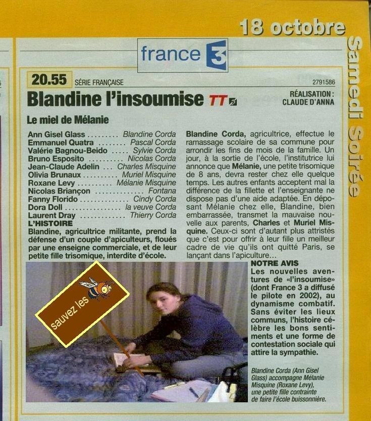 En attendant de plus amples détails, sachez juste que son pseudo innocent n'a rien à voir avec son véritable tempérament et que son ardeur à manifester ses opinions n'a pour égal que sa ferme détermination à erradiquer tout courant idéologique opposé au sien (pour preuve cet article de journal televisé, retraçant un moment d'anthologie parmi tant d'autres dans la vie de cette militante acharnée...;-)