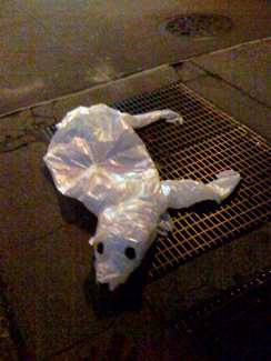 - “Bonjour, vous auriez quelques sacs plastiques?” - “Vous savez, il faut prendre des sacs réutilisables maintenant”. - “Oui oui, j'y pense, j'en ai déjà d'ailleurs, mais je les ai encore oubliés à la maison. Faut dire qu'ils ne sont pas très pratiques à trimballer, quand même. Prochaine fois! (sourire de betterave).” - “Vous savez nous on a consigne de faire baisser la consommation de sacs pour habituer les gens aux sacs réutilisables. Bientôt de toutes façons il n'y aura plus que ça, alors il faut s'habituer. C'est important, il faut s'y faire, c'est tout.” - “effectivement, oui oui, héhé, (tendinite naissante au niveau des maxillaires)”. Léger blanc. Moment fatidique. Elle dépose enfin les sacs sur la banque. 5 sacs. Bien joué, tu as été convaincant. Tu emballes vite , tu t'éloignes. Grandes oreilles te lance un regard vide. La bonne blague : lui aussi a oublié ses sacs réutilisables, lui aussi est blasé de devoir faire le jambon cru pour obtenir trois pauvres sacs plastiques sans déclencher une polémique internationale. |